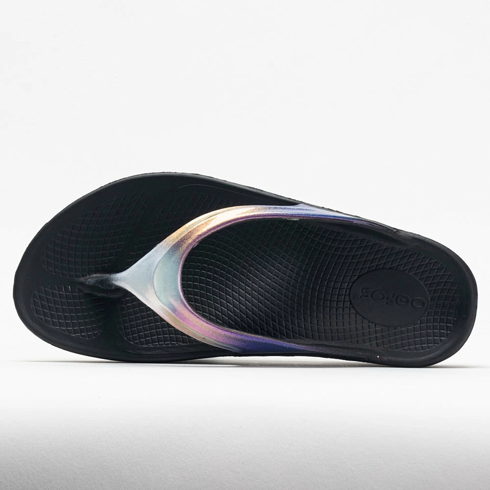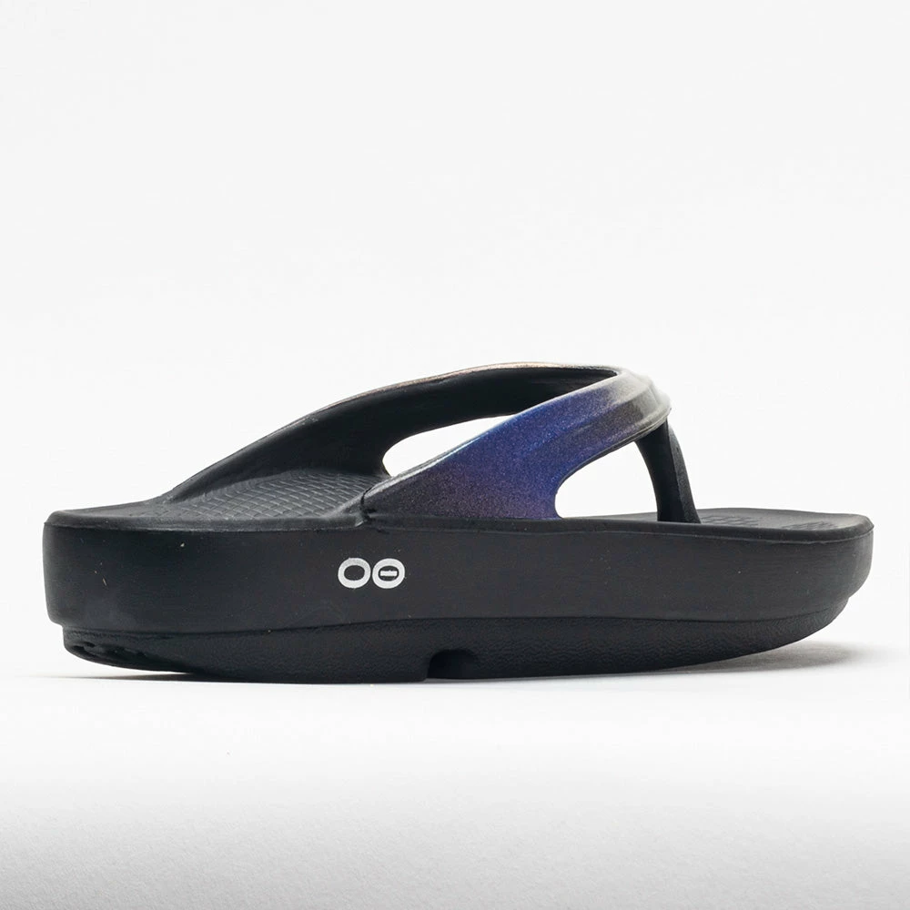 Pamper your feet to plush comfort. OOFOS OOLala Luxe recovery sandals feature OOfoamยฎ Impact Absorption Technology that absorbs 37% more impact than regular footwear. This technology relieves stress on your feet and aids in recovery after physical activities. The OOFos OOlala Luxe adds style to every step as you relax after a long day.