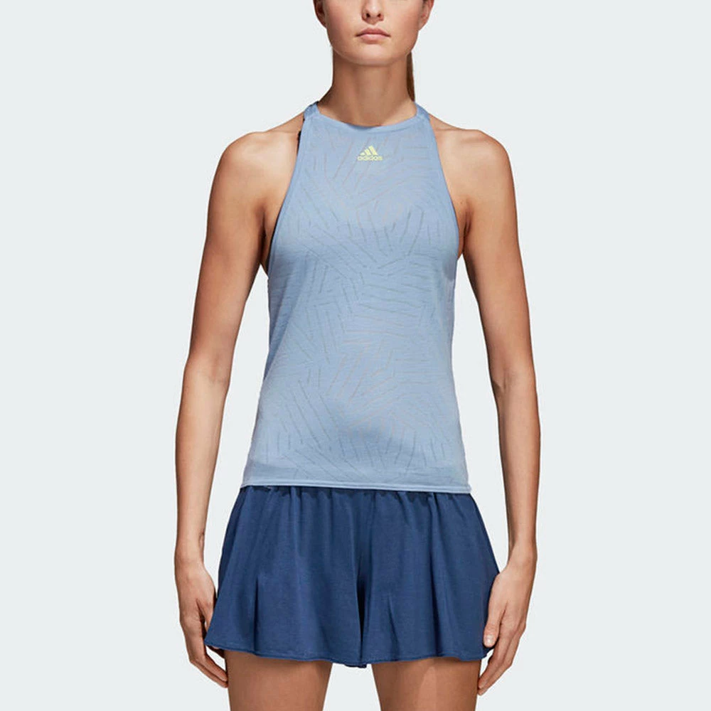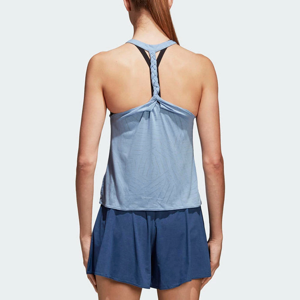 Enjoy relaxed style from the lightweight adidas Melbourne Burnout Tank. A burnout style fabric features a subtle, geometric design and a fun, braided middle T-strap. Pair this trendy tank with your favorite pair of tennis shorts or a cute tennis skort.
