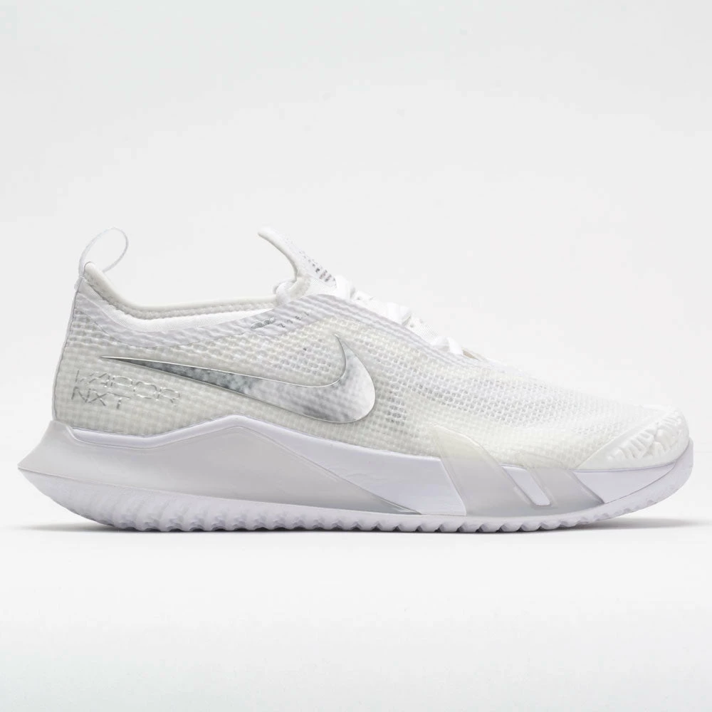 Be at your best during fast and fierce matches in the Nike React Vapor NXT! Replacing the Air Zoom Vapor X Knit, the NXT is the first tennis shoe to feature Nike React technology to give players more comfort on the court. Slip into a sock-like upper with Flyweave technology that acts as a second skin to mimic every movement. Enjoy a soft, close-to-the-ground feel from the Nike React foam midsole, which helps you push off and explode toward the ball. The herringbone outsole uses a data-driven design to help you slide safely on the court.