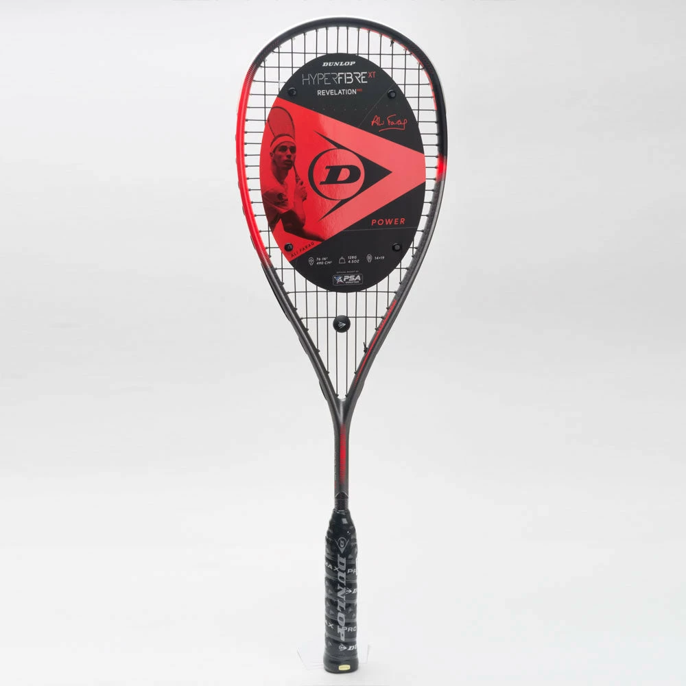Hyperfibre XT Series racquets were designed to deliver maximum power and speed for aggressive players. Advanced frame aerodynamics make these racquets ultra-maneuverable and allow for nearly effortless power generation. The Dunlop Hyperfibre XT Revelation Pro Squash Racquet lets you hit shots with real impact. The open-throat frame shape packs extra power, while the 490cm2 head size delivers extra precision and control.