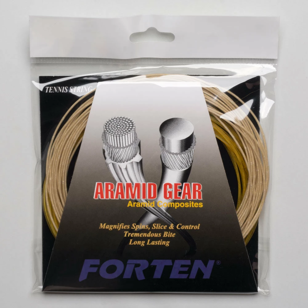 - Forten Aramid Gear (Mains) combines the tremendous durability of Aramid with the revolutionary sharp gear teeth that bite the ball and create unbelievable spin and control.