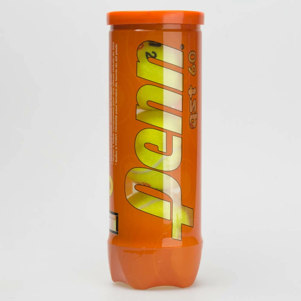 The Penn QST 60 Felt Orange Dot 24 can case of balls is geared toward more advanced young players between ages 9 and 10 hitting on a 60 foot tennis court. These balls feature a low compression designed core that allows for the chance to have longer rallies. The bold yellow felt stands out on the court.
