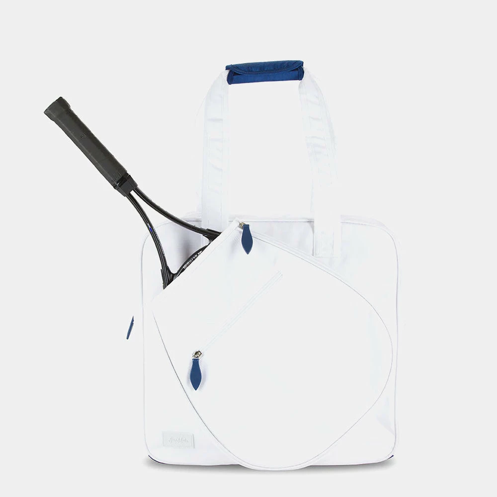 Combining sleek style with ample storage, the Ame and Lulu Sweet Shot Tennis Tote 3.0 brings everything you need to the court. Fit up to two racquets in the interior racquet pocket, while an interior zip pocket protects your essentials. Two exterior water bottle pockets help with hydration when you need a break. Enjoy convenient carrying to and from the court with the 10″ handle drop.