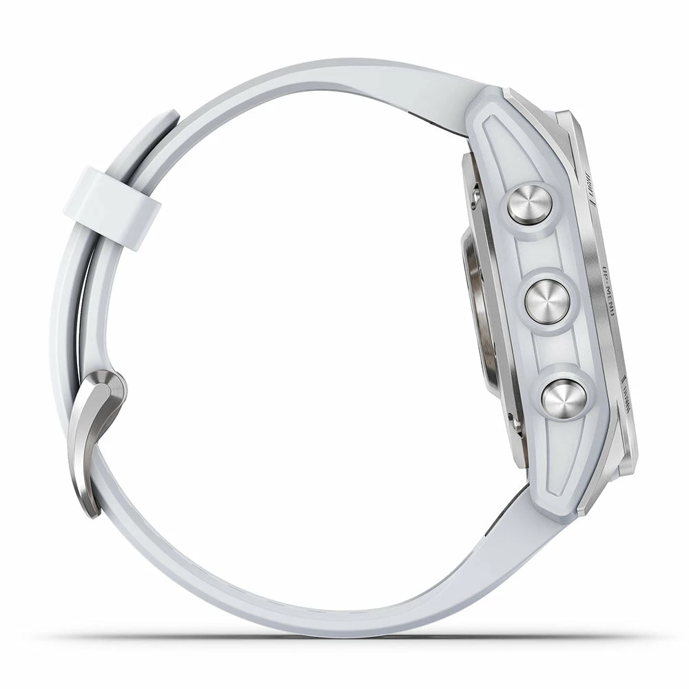 Built for daily use, the smaller-sized fenix 7S multisport GPS watch goes strong seven days a week. Meet any athletic or outdoor challenge with cutting-edge training features, sports apps and health monitoring. Styled for smaller-sized wrists, the watch’s fresh new design adds a new touchscreen interface to access selections along with the watch’s trusted button controls. Gain performance insights and metrics that help you manage your effort and build stamina. Optimize recovery with 24/7 health and wellness monitoring of heart rate, respiration, stress, sleep and more. GPS and outdoor navigation sensors guide your outings off the beaten path. For your tamer days, connected features include smart notifications, music storage and Garmin Pay contactless payments to complement your activities.