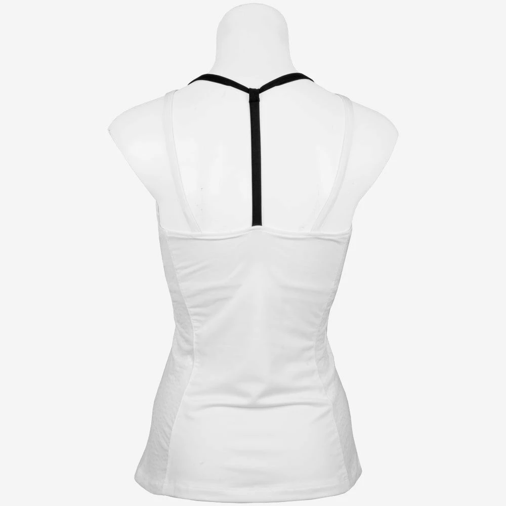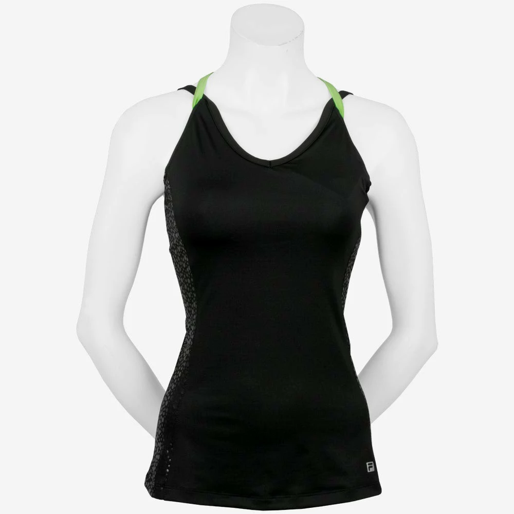 The FILA Spotlight Halter Tank is a trendy and lightweight tank for summer days at the tennis courts. The sleek, moisture-wicking fabric with contrasting color, skinny strap design is both comfortable and flattering. Subtle dot design along the sides adds a nice touch while the built-in bra adds extra support.