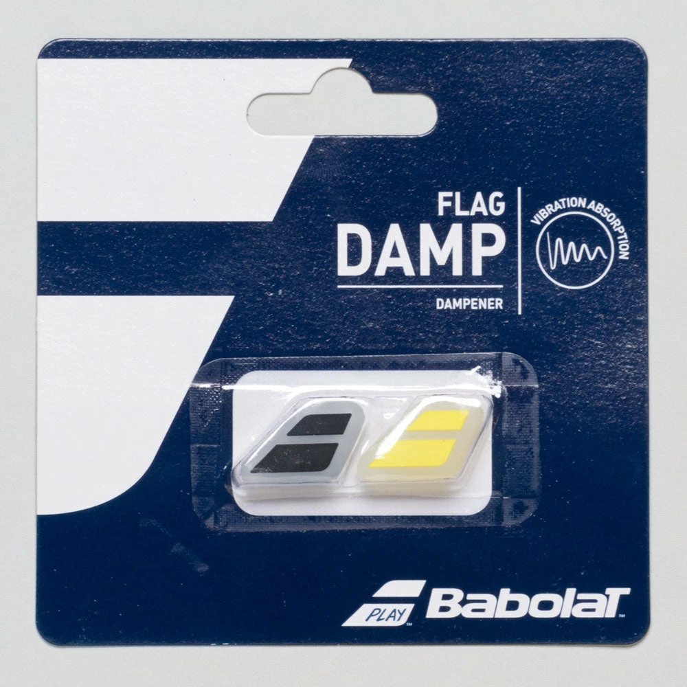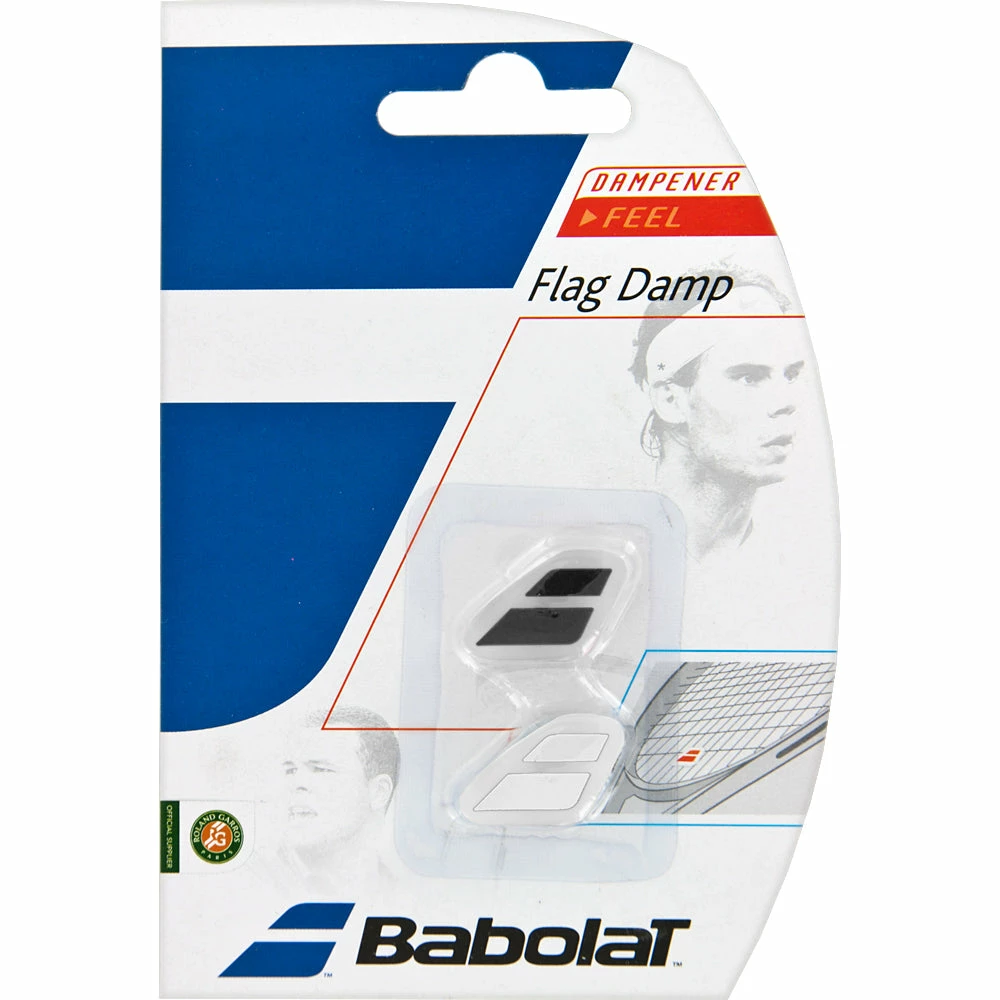Complete the look of your tennis racquet with the pro look and performance of the Babolat Flag Vibration Dampener. Filter vibrations to reduce the harsh throbbing youll sometimes feel through your frame upon ball impact.