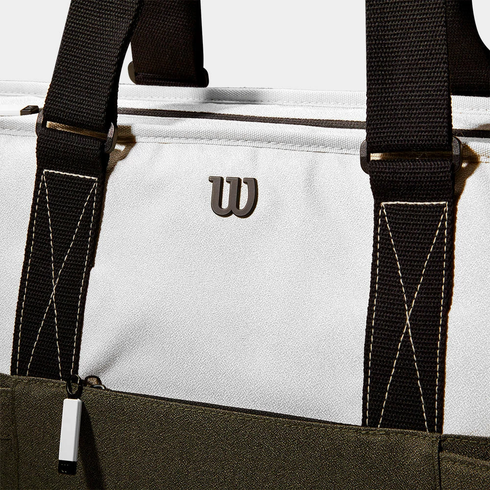 Sleek and functional, the Wilson Women’s Tote Bag carries all your essentials to the court. Hold up to two racquets in the padded interior sleeve, additional gear in a large zippered pocket and water bottles in the exterior pockets. Additional highlights include exterior zippered accessory pockets for smaller items and adjustable shoulder straps for convenient transportation. Crafted from 100% recycled PET polyester, the Wilson Women’s Tote Bag brings style and sustainability to the court!