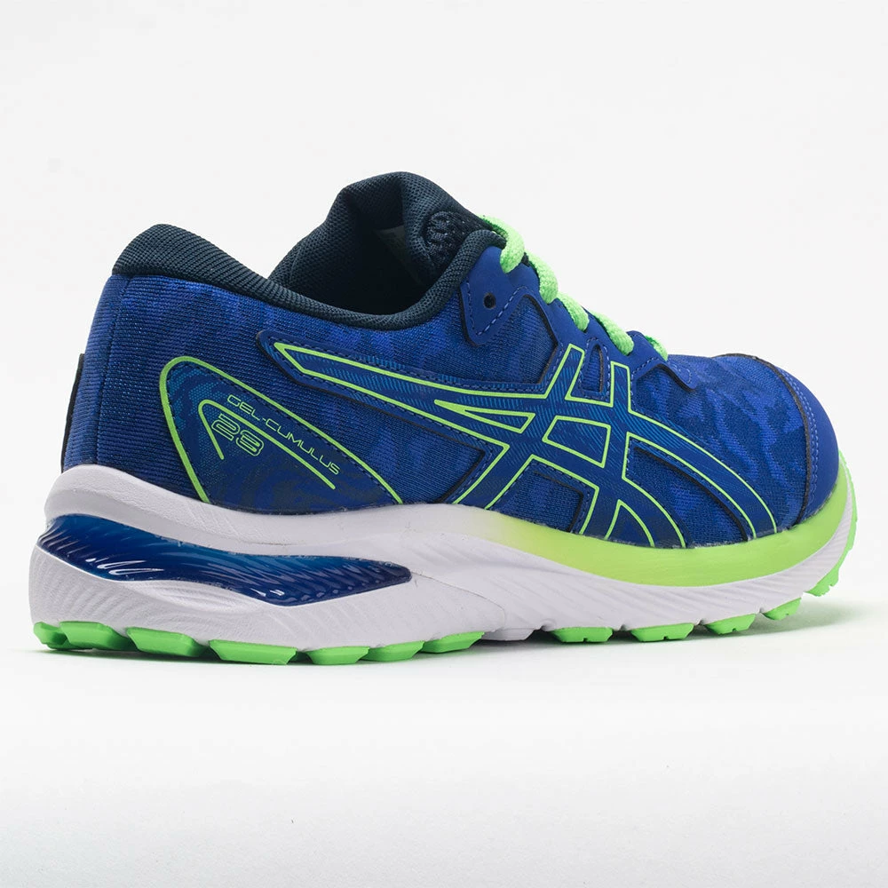 Leading a smooth stride with soft cushioning, the Asics GEL-CUMULUS 23 GS offers high-quality comfort. Enjoy a plush underfoot feel with every step on the GEL™ midsole. Flex grooves in the outsole provide fluid transitions with every step. The Asics FIT CHECKER™ print on the sock liner’s toe helps parents recognize the right shoe from the left. It also helps them identify when they’re outgrowing their shoes.
