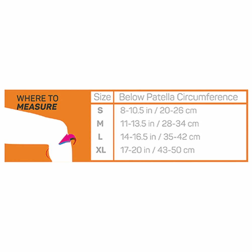 The OS 1st PS3 works to relieve pain associated with Patellar Tendinitis or Jumpers Knee. This sleeve is made with lightweight material infused with Compression Zone Technologyยฎ to apply graduated compression to the patellar tendon. You can easily wear this sleeve under clothing due to its sleek design. A hypoallergenic gel helps keep the sleeve in place when you are active without causing irritation. Pack this sleeve away easily in your gym or travel bag.