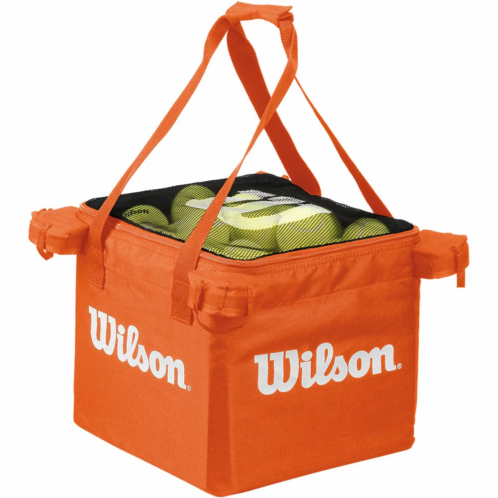 For travel to and from the tennis court, the Wilson Teaching Cart Orange Bag is a safe and convenient tool. This bag has the capacity for 150 tennis balls and fits securely in a teaching cart for easy access during practice. This lightweight bag features a zippered top that allows for safe travel with your equipment.