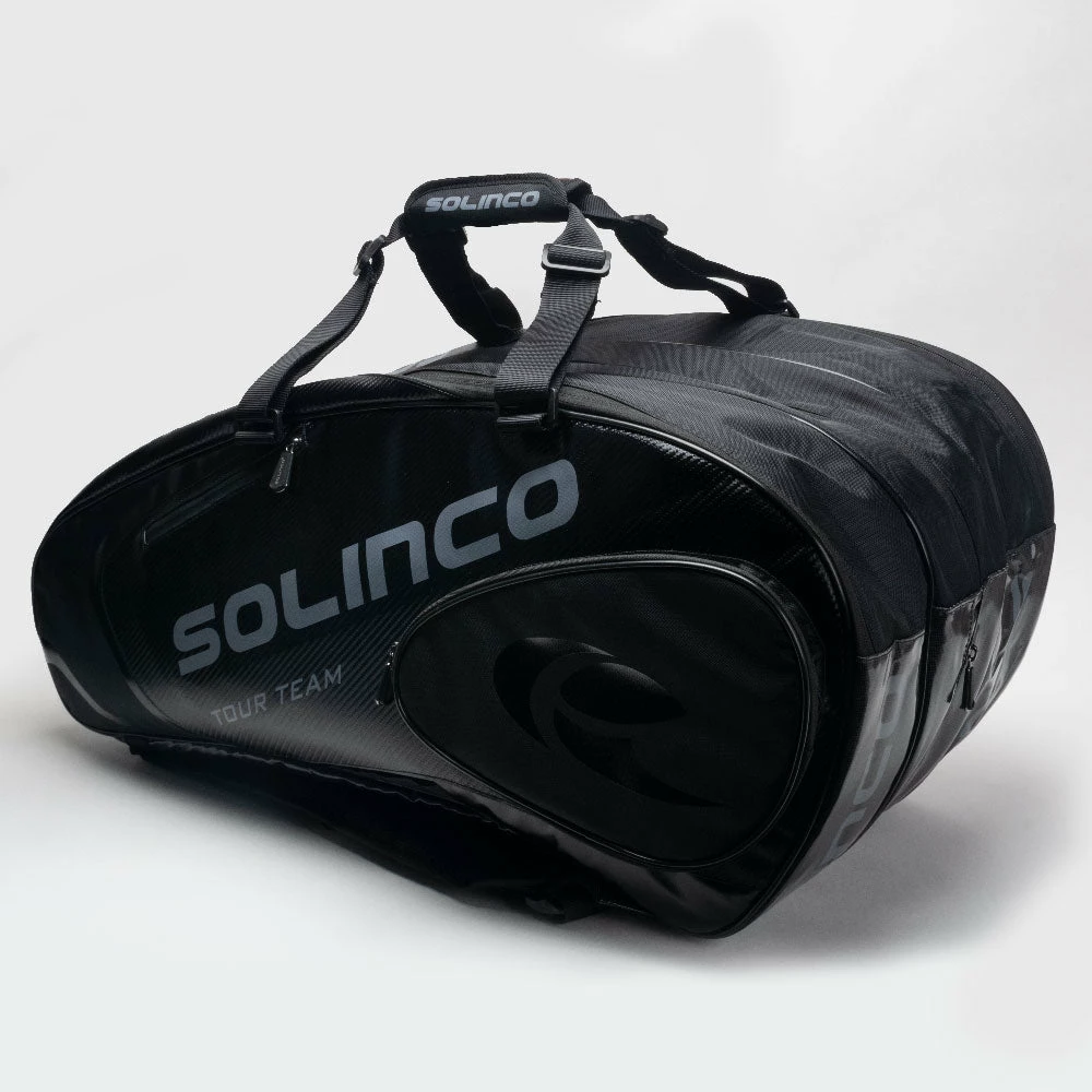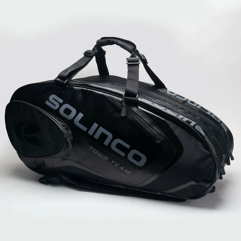 The Solinco Blackout 15 Pack Bag is perfect for players who need massive storage for multiple racquets. This tennis racquet bag features three compartments, including two with thermal lining to keep the strings safe from extreme temperatures. Enjoy additional space for racquets and gear in the middle compartment. Two side accessory pockets offer storage for smaller items, while the bottom of the bag features a separate shoe tunnel to help organize your equipment. Finally, the adjustable backstraps straps include plush padding for comfortable carrying.