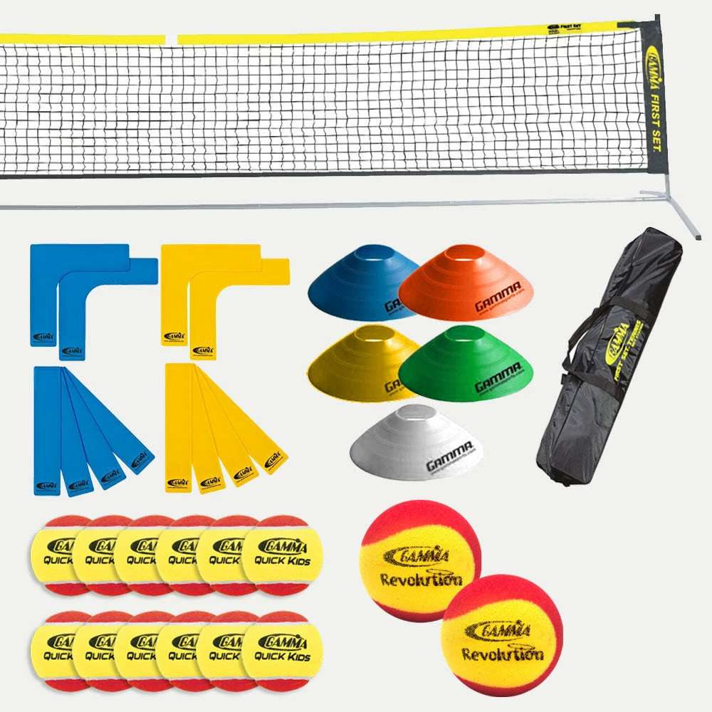 - 1 First Set Tennis Net: Portable, lightweight, quick and easy to set up. The perfect teaching aid for children. Can be used indoors or out. Net is 18 feet long by 33 inches high.