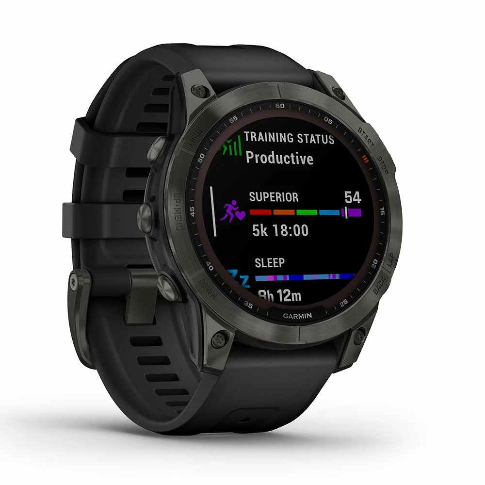 Built for daily use, the Garmin fenix 7 Sapphire Solar multisport GPS runs strong seven days a week. Featuring a 1.3′ display and scratch-resistant Power Sapphire solar charging lens, its battery life sustains your athletic and outdoor challenges. Use trusted button controls or the new touchscreen interface to access selections. Gain performance insights and metrics that manage your effort and build stamina. Optimize recovery with 24/7 health and wellness monitoring of heart rate, respiration, stress, sleep and more. Outdoor navigation sensors and new multi-band GNSS technology guide you with high accuracy, even in challenging environments. Plus, you’ll have preloaded TopoActive maps and worldwide ski and golf maps right on your wrist. For your tamer days, connected features include smart notifications, music storage and Garmin Pay contactless payments to complement your activities.