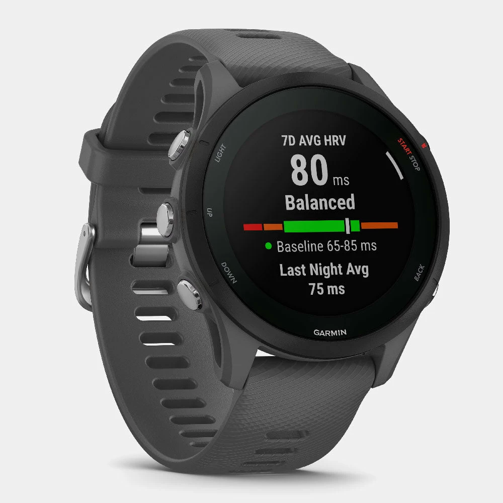 - Forerunner 255 provides up to 14 days of battery life in smartwatch mode and up to 30 hours in GPS mode for a full picture of your health from sleep to training