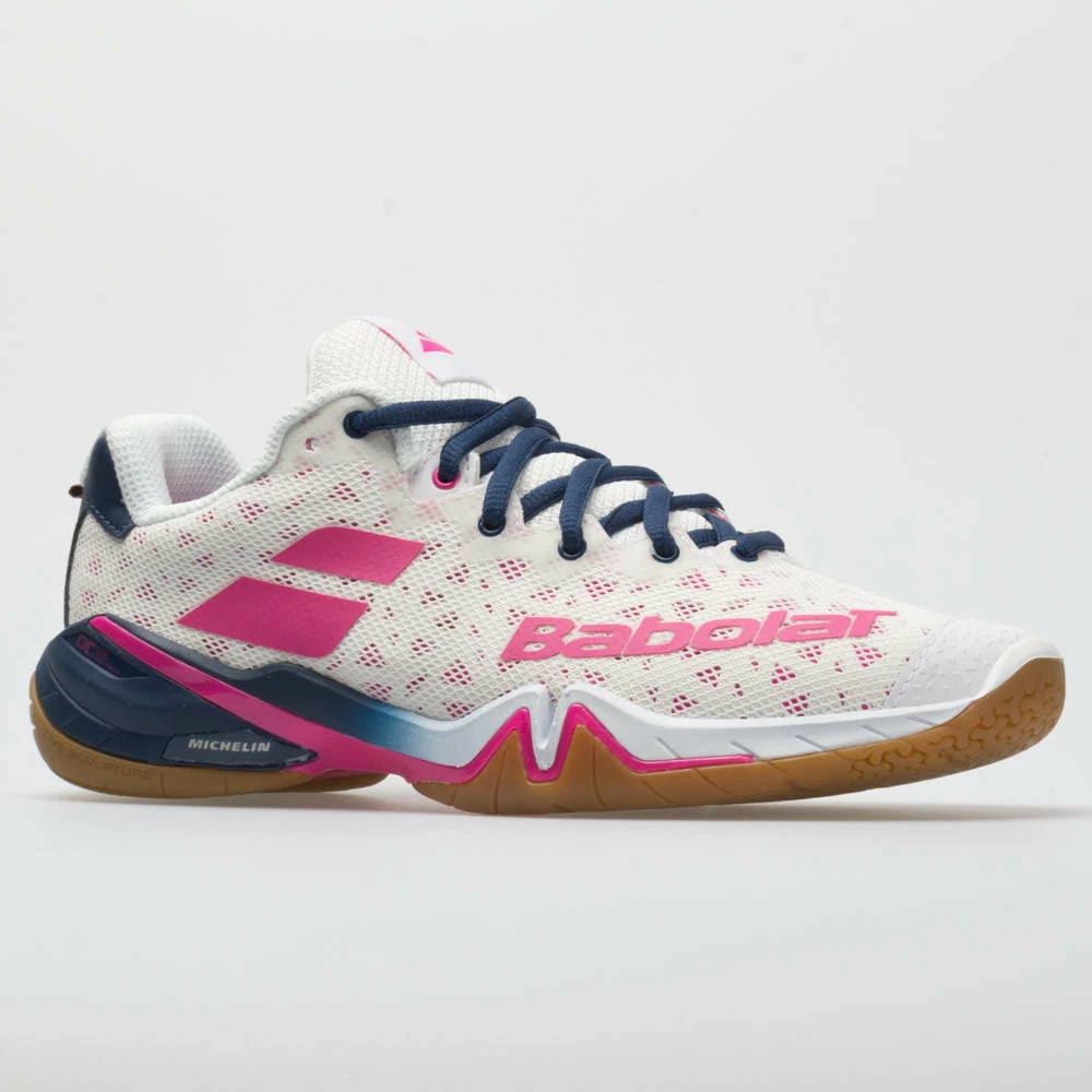 Step up your badminton game with the Babolat Shadow Tour! These indoor court shoes offer players the perfect combination of speed and comfort. The upper combines Ariaprene fabric for breathability, and a higher heel collar to improve wrinkle support. Enjoy excellent shock absorption and dynamic responsiveness under the DCS tech midsole. The Active Sculpture outsole improves grip for explosive movements, so you can smash, pivot and jump with confidence.