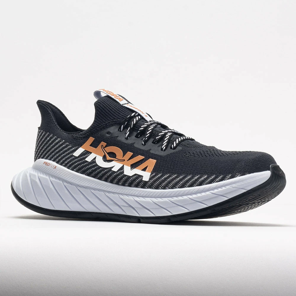 Unleash your speed in the Hoka Carbon X 3! This neutral running shoe is more propulsive than its predecessor, featuring an energized ProFlyXโข foam and a cozy knit upper. Enjoy fast and snappy transitions from the carbon fiber plate and aggressive Meta-Rocker technology in the midsole. A softer and lighter EVA foam mixes with a durable, rubberized EVA foam for a fast feel at ground contact. Finished with a colorful and asymmetrical design, the Hoka Carbon X 3 makes a bold statement as you cross the finish line!