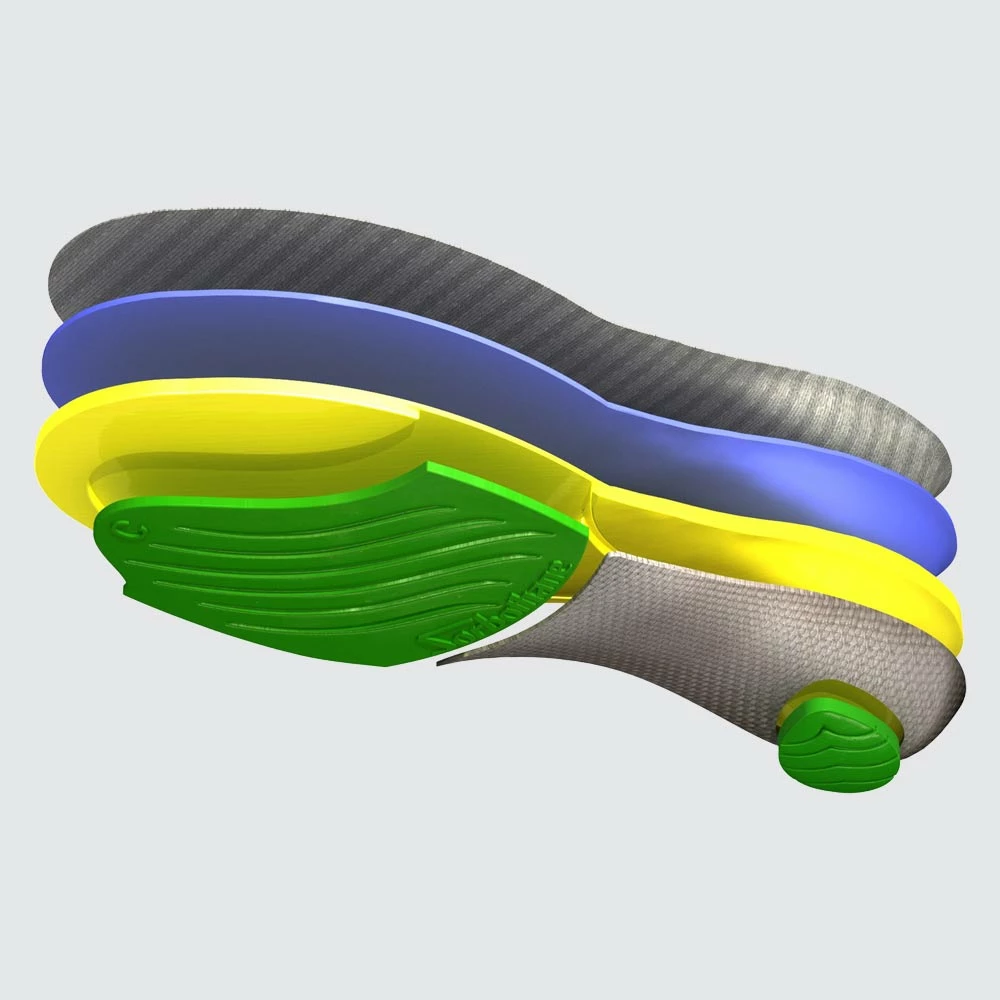 - Sorbothaneยฎ inlays offer comfort and foot-strike protection.