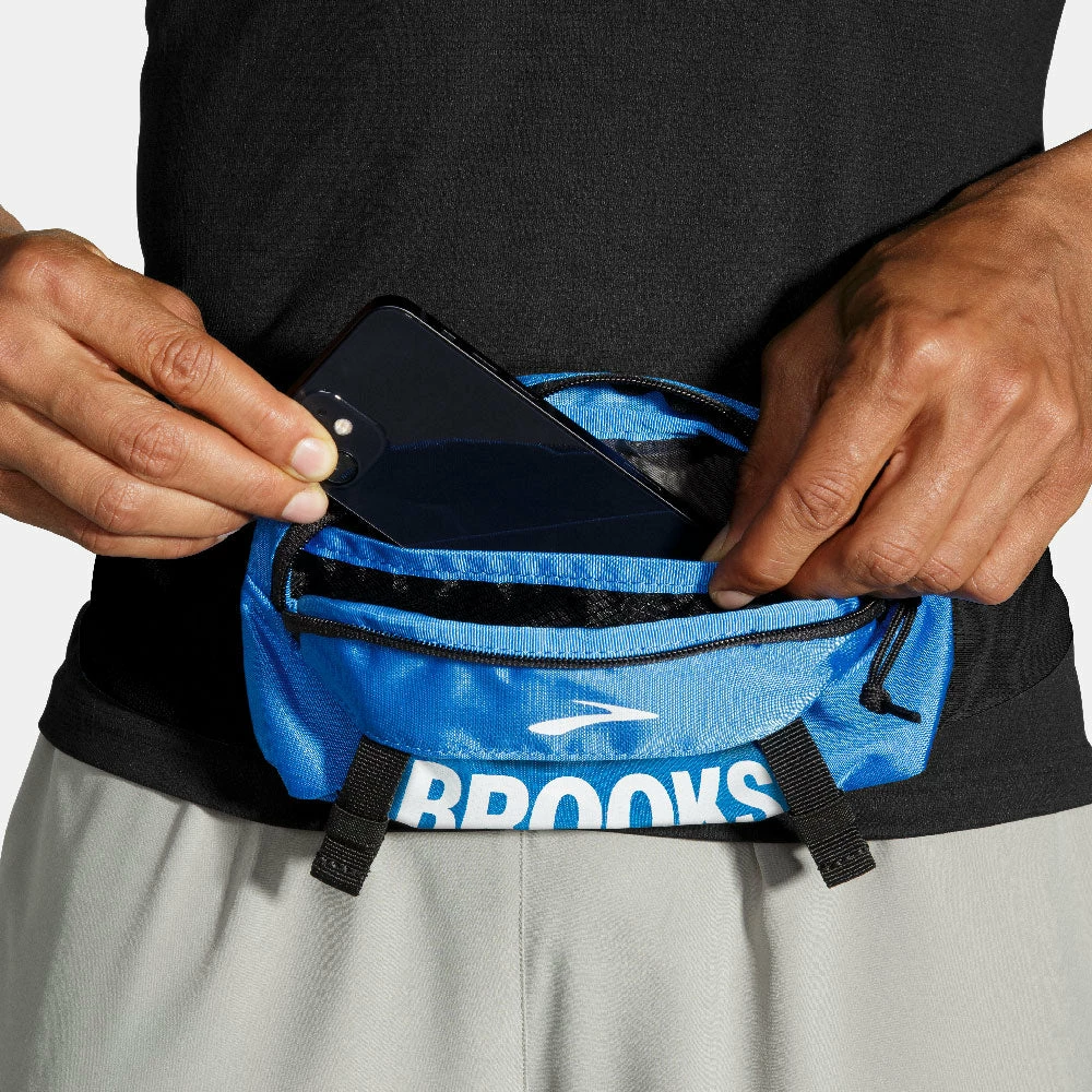Keep your essentials close with the Brooks Stride Waist Pack! Lightweight and comfortable, this waist pack holds 1L worth of gear while offering a no-bounce fit on the run. The weather-resistant fabric made from recycled nylon provides eco-friendly protection. Whether you’re on a daily commute or running adventure, the Brooks Stride Waist Pack steps up your storage game wherever you go!