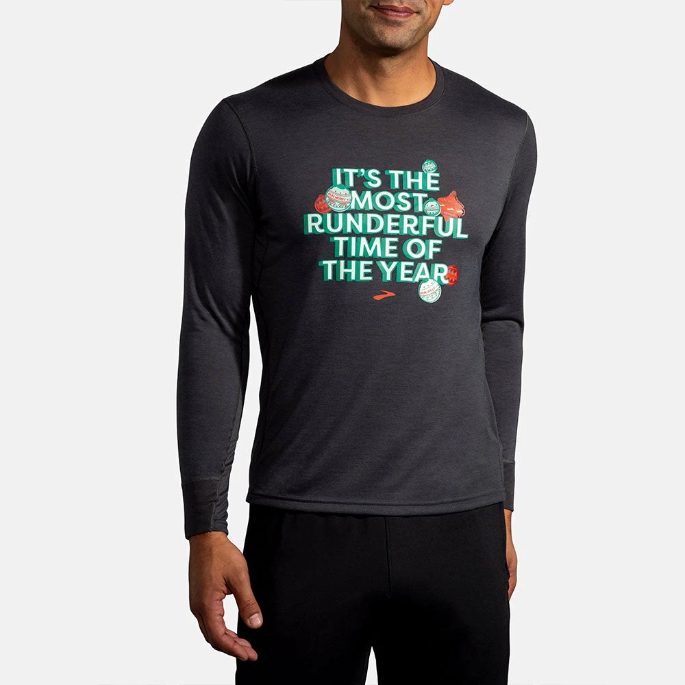 Enjoy soft and breathable comfort on your runs in the Brooks Runderful Distance long-sleeve t-shirt! Quick-drying and sustainably made, this running layer is the perfect option to support your holiday hustle. Seasonal graphics add style while you’re dashing through the snow.