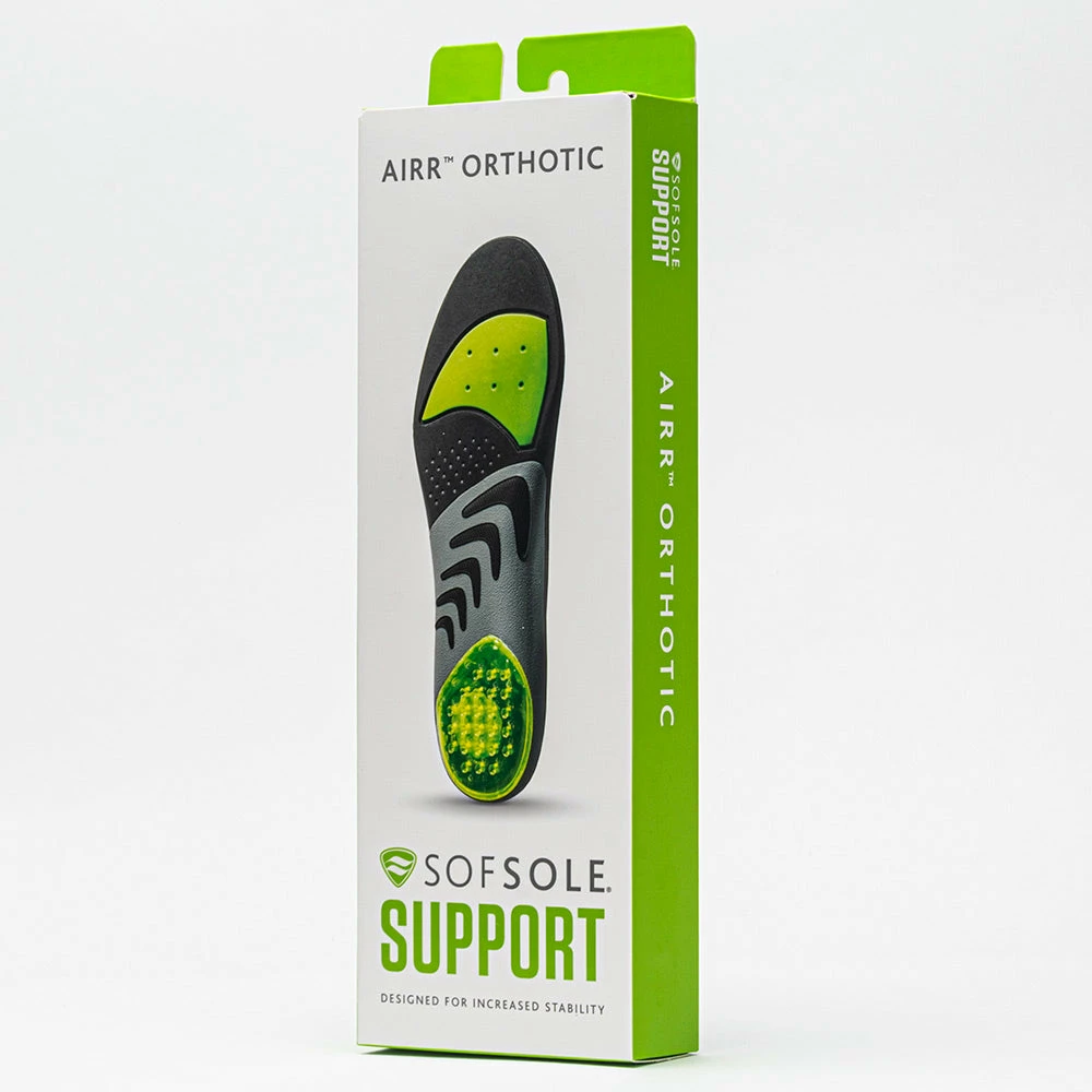 Designed to provide proper foot alignment, the Sof Sole Aiir® Orthotic Insole gives the support you deserve. Air capsules in the heel increase shock absorption, adding comfort to every step. A reinforced stability plate in the arch and heel provides the support to keep you moving.