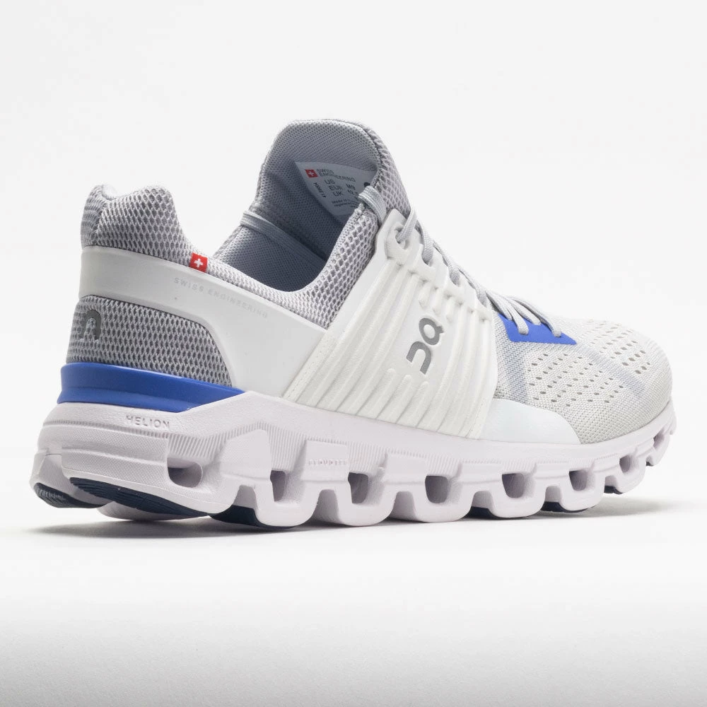 Built for urban runners, the On Cloudswift absorbs impact from the asphalt to keep you comfortable. This neutral running shoe provides smooth and effortless strides when you’re pounding the pavement. Enjoy a soft step-in feel from the recycled engineered mesh upper with side panels for support. The Helionโข superfoam midsole adds forefoot cushioning while bigger clouds in the heel dampen impact from each strike. Feel smooth and fluid transitions from the integrated Speedboardโข in the midsole. Whether you’re crushing your commute or pushing the pace on your lunch break, running on hard surfaces never felt better in the On Cloudswift!