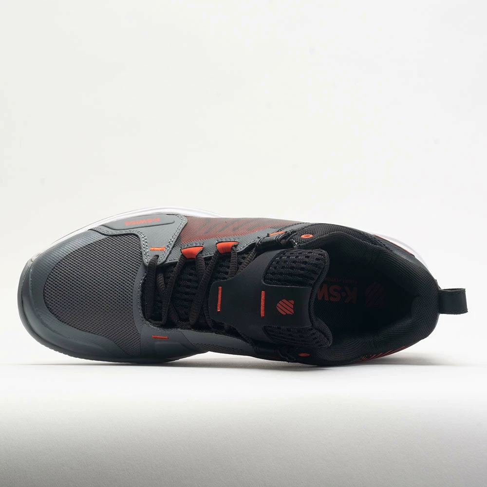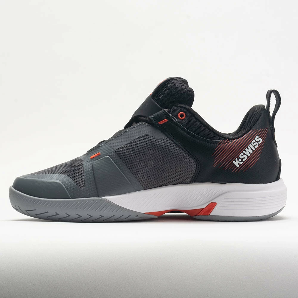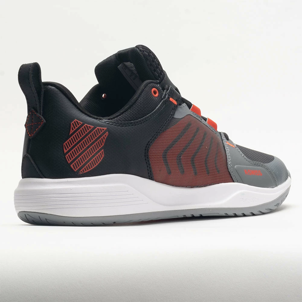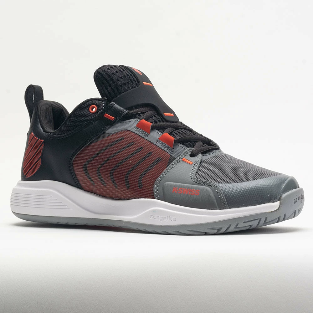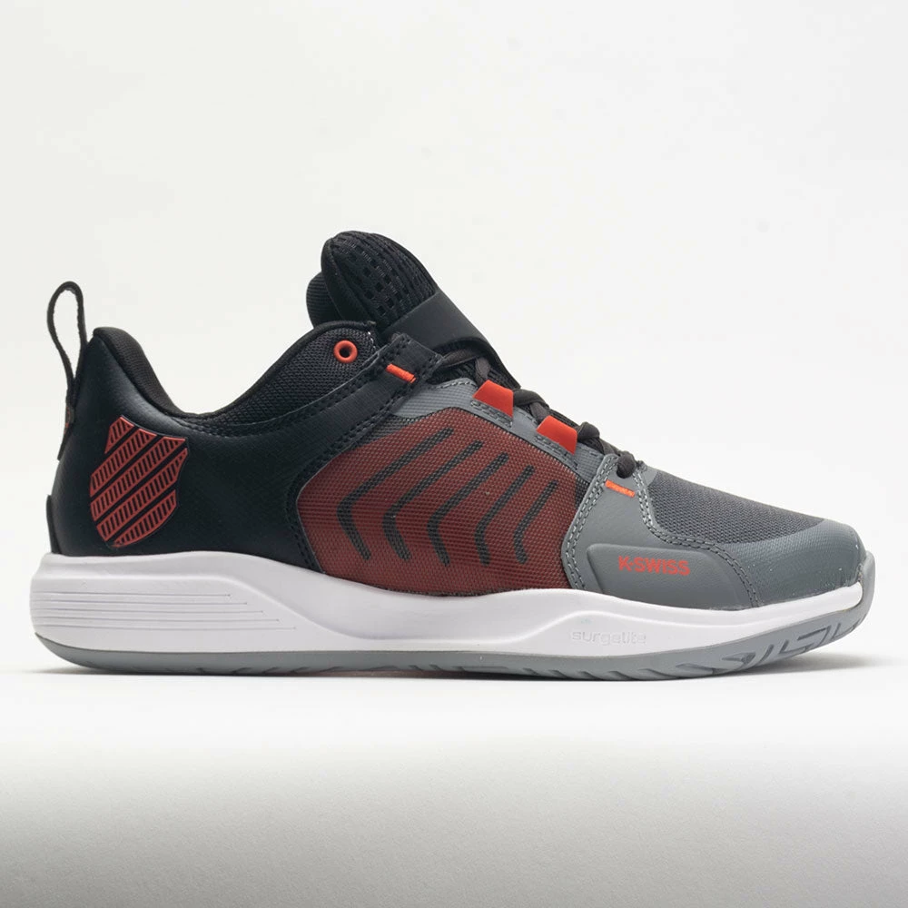 The latest addition to the Ultra family, the K-Swiss Ultrashot Team provides support and durability for various playing surfaces. This budget-friendly version of the Ultrashot 3 offers signature stability and more comfort at a better value. Slide into a light and breathable mesh upper with translucent paneling for sophisticated style. Stay energized during long matches on the lightweight Surge 7.0 midsole. Key visual elements like the five chevron stripes on the quarter and enlarged shield logo on the heel create a tennis/lifestyle vibe every time you take the court.
