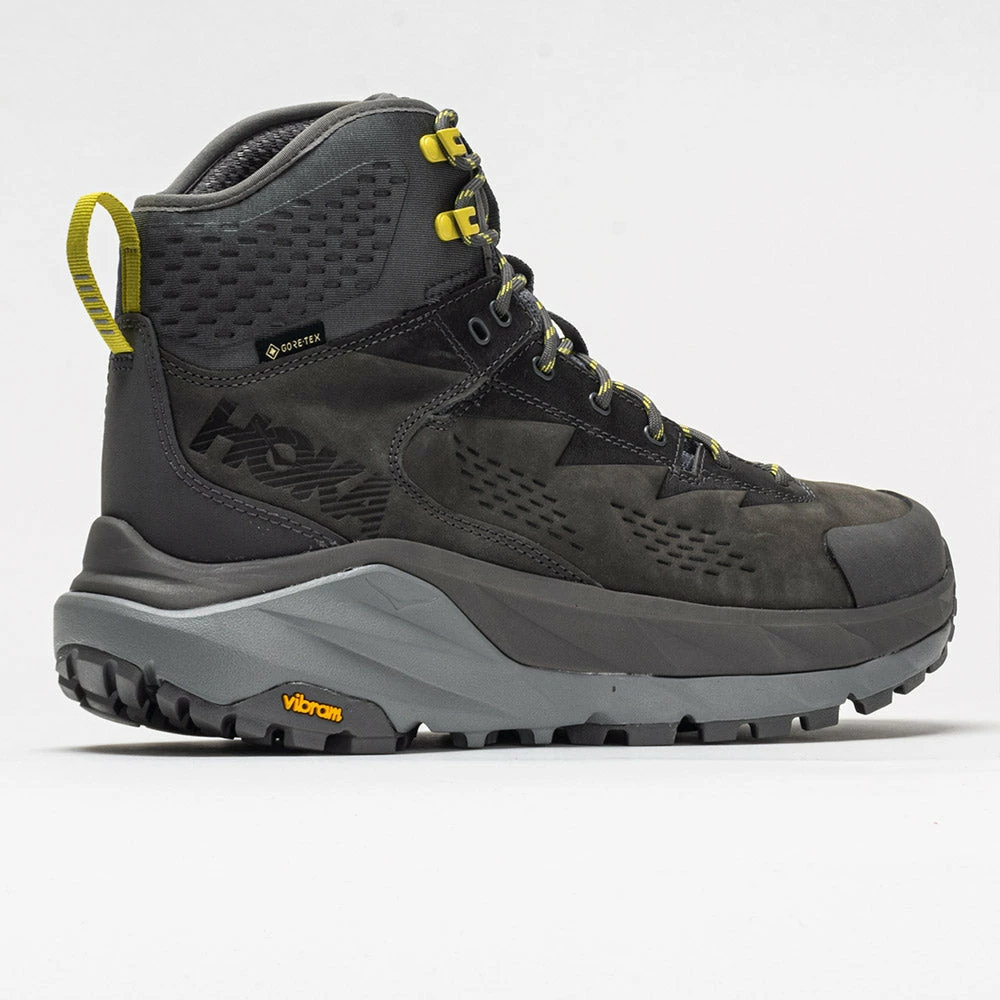 Named for the Maori word meaning strength and support, the Hoka One One Kaha GTX is true to form. These hiking shoes keep your feet and ankles well-supported without weighing you down as you move through rocky and rugged terrain. A soft and smooth ride combines with a Vibramยฎ Megagrip traction outsole, and a GORE-TEXยฎ waterproof upper to keep you dry in whatever conditions you may encounter.