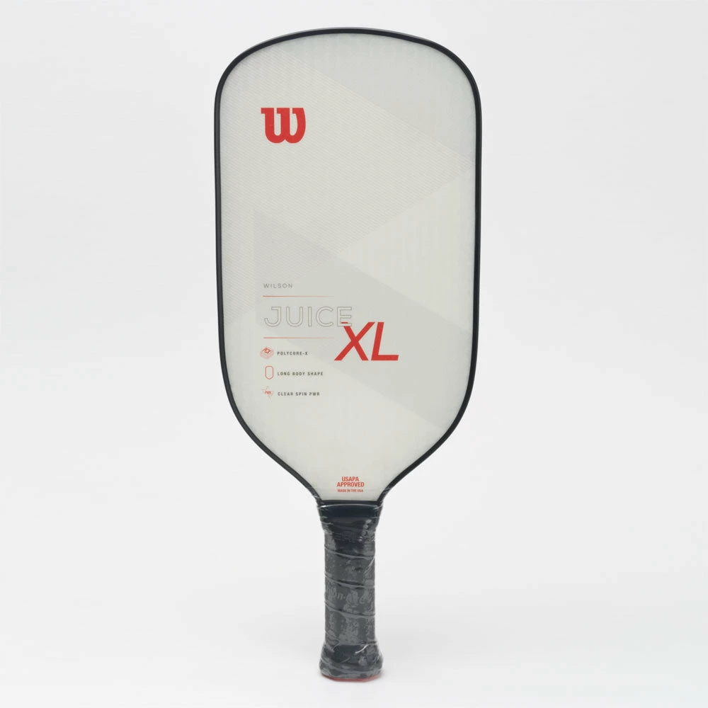 With impressive power and remarkable reach, the Wilson Juice XL pickleball paddle helps experienced players succeed on the court. A durable, lightweight fiberglass construction wraps around a polymer core to create a soft feel and vibration dampening at impact. The elongated paddle shape helps you return those hard-to-reach shots. For players who consistently hit the sweet spot, the Wilson Juice XL paddle takes your game to another level!
