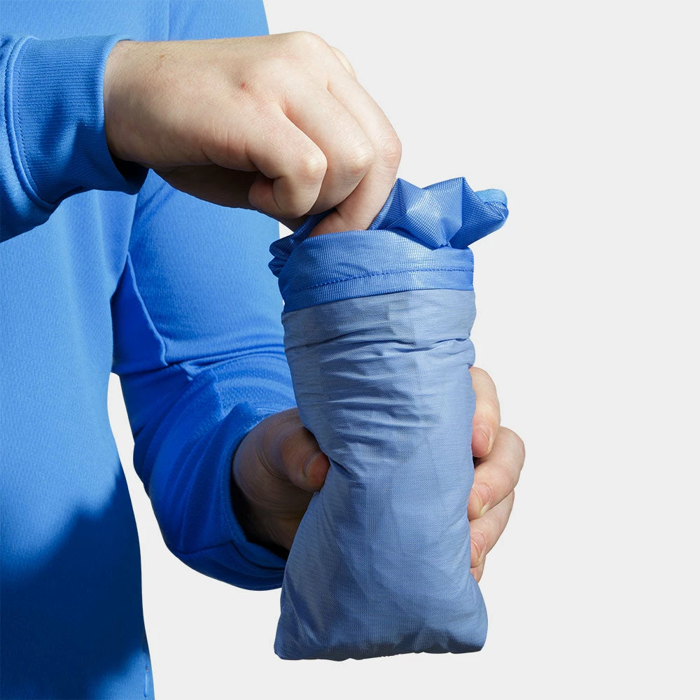 - Jacket can be stuffed into a pocket on the hood then easily stowed for packable convenience.