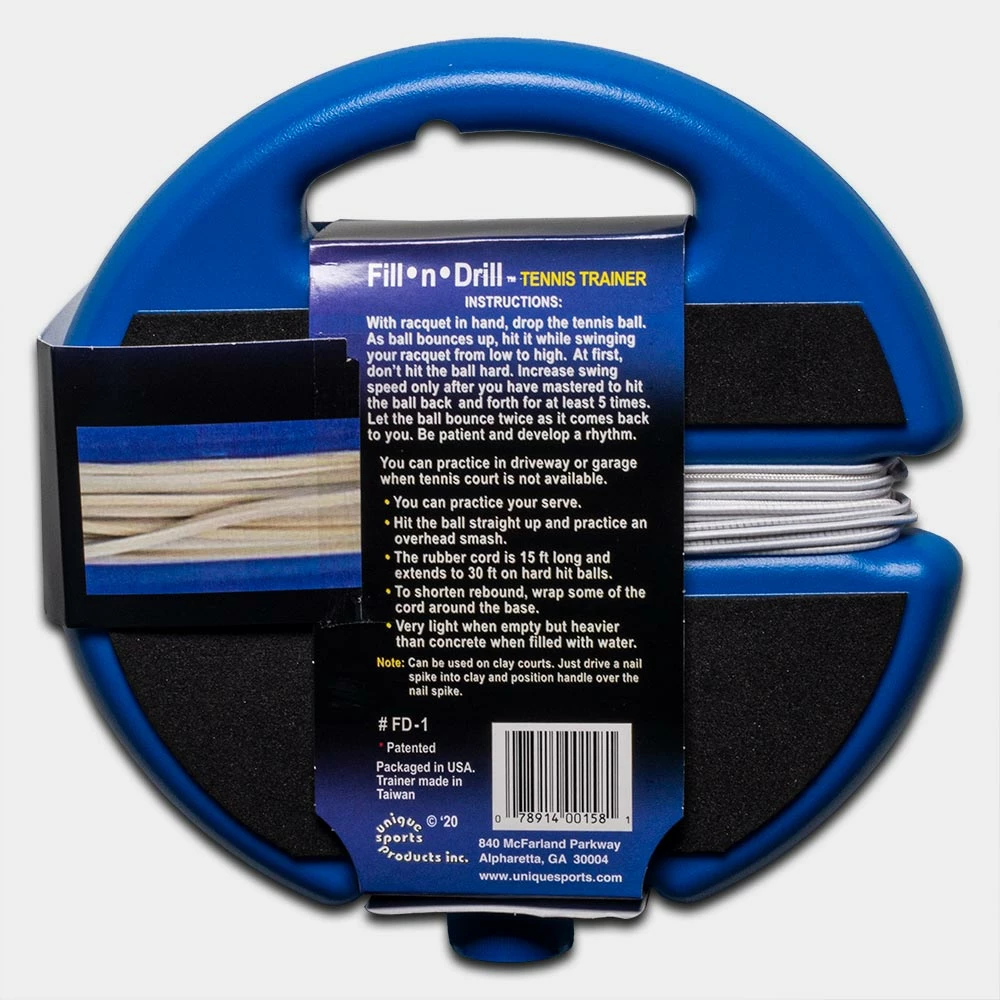No practice partner? No open tennis court? No problem! Practice your forehand, backhand, serve and overhead smash by yourself with the Fill N Drillโข Tennis Trainer from Unique. Use it in a tennis court, driveway or garage.
