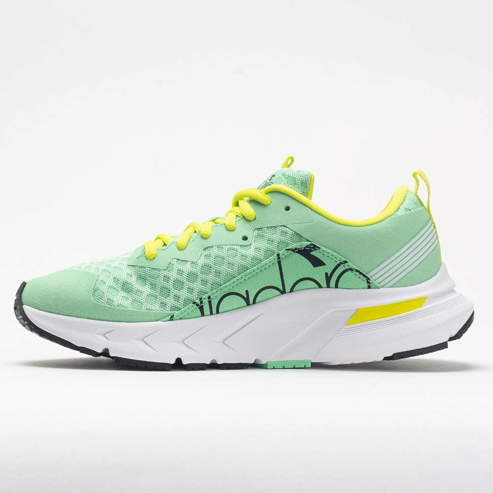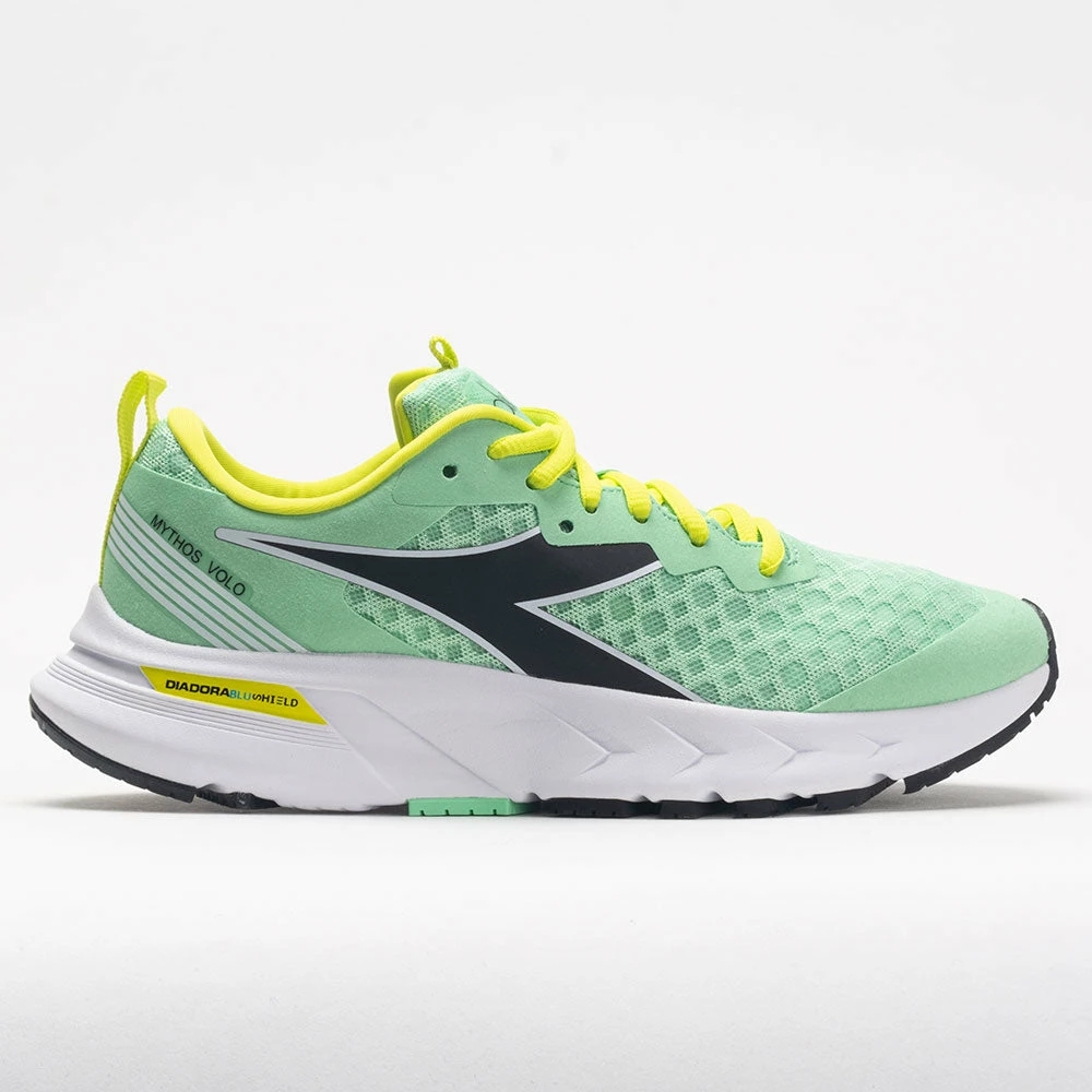 Get set to take flight in the Diadora Mythos Blushield Volo! This versatile running shoe does it all, from quick intervals and fast tempos to long-distance training. Slip into a light and breathable mesh upper to stay cool as you breeze through the miles. Blushieldยฎ technology in the midsole absorbs shock from every step to keep you comfortable. Enjoy strong traction from the Duratech 5000 outsole, which improves durability for extended use. If you want to experience smooth landings and explosive lift offs, step into the Diadora Mythos Blushield Volo and reach new heights!