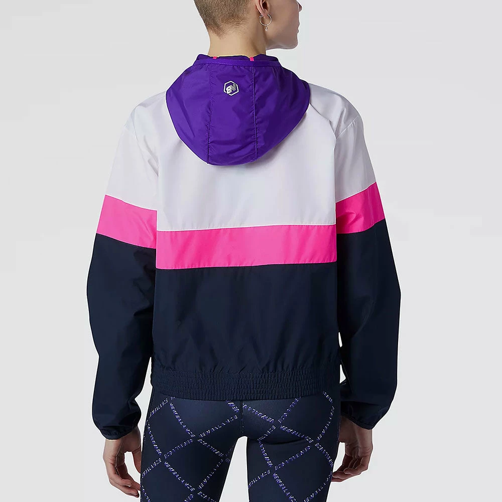 Stay bold and confident in tough weather with the New Balance Fast Flight Jacket! This running jacket makes a style statement with its bold color-blocked paneling. NB Water Defy water-resistant technology and NB Wind Defy technology protect against the elements, while the relaxed fit easily suits your workout style. Breathable polywoven material ties the piece together with a comfortable touch.