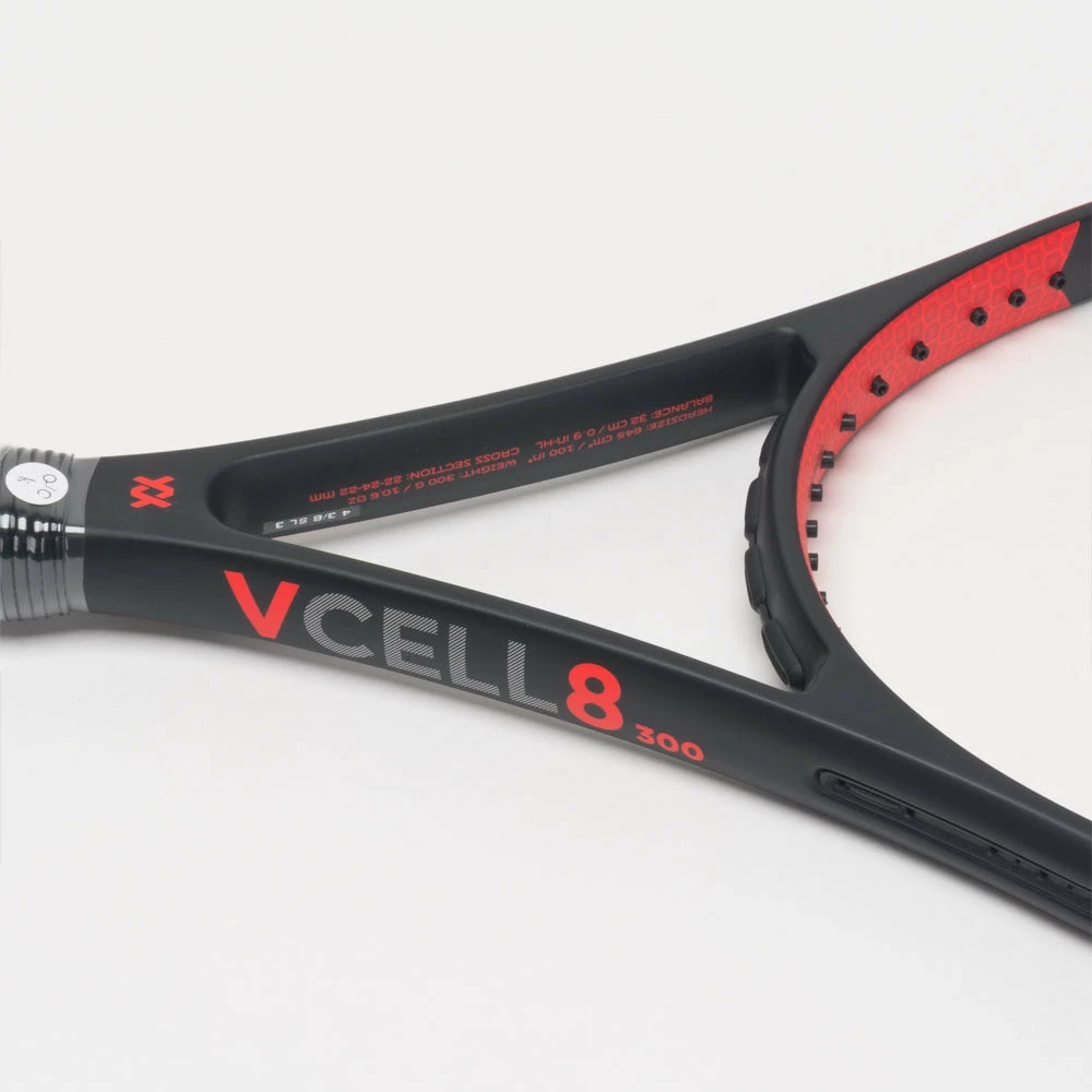 For the aggressive tennis player who wants a refined and precise weapon on the court, look no further than the V-Cell 8 300G. This racquet offers the best blend of stability, power, and control in the V-Cell 8 series. A 16×18 string pattern provides the perfect tool for the baseline grinder who attacks the ball with topspin. With it’s quick handling and spin-friendly response, the V-Cell 8 300G gives tennis players the best of both worlds.
