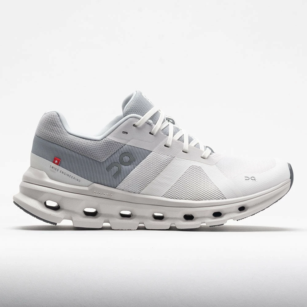 Soft and supportive, the On Cloudrunner leads a light and cushioned ride. This neutral running shoe offers immediate step-in comfort that encourages you to hit the road. Slide into a ventilated mesh upper and enjoy soft comfort for long runs. Experience an ultra-light sensation with every stride on the CloudTecยฎ and Zero-Gravity foam midsole. Swiss-engineered elements add a difference in the details, removing distractions so you can focus on your training.