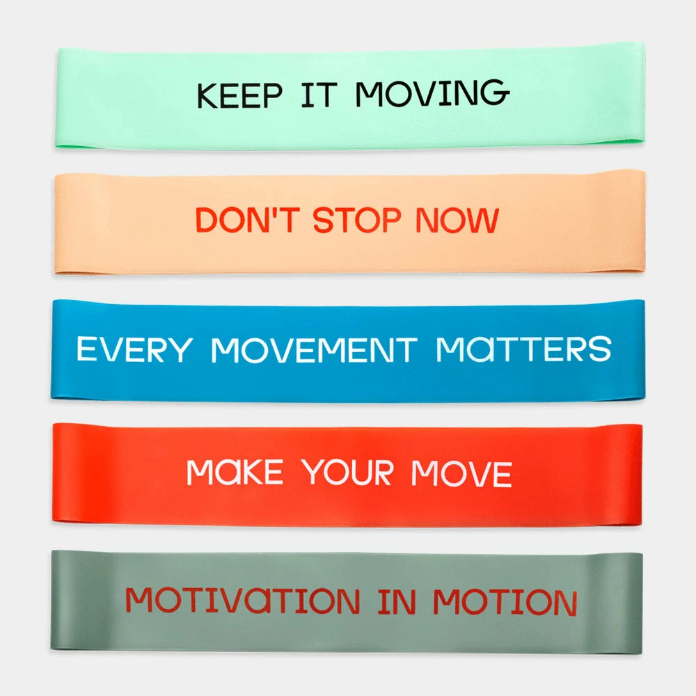 Add intensity to your workout with Bala Bands! Made of 100% natural latex, these resistance bands offer versatile training options. Customize your exercise with five different strengths and sizes. Each band has a fun and colorful design with a motivational message to keep you inspired throughout your workout. Whether you’re doing yoga, aerobics or pilates, Bala Bands help you feel the burn!