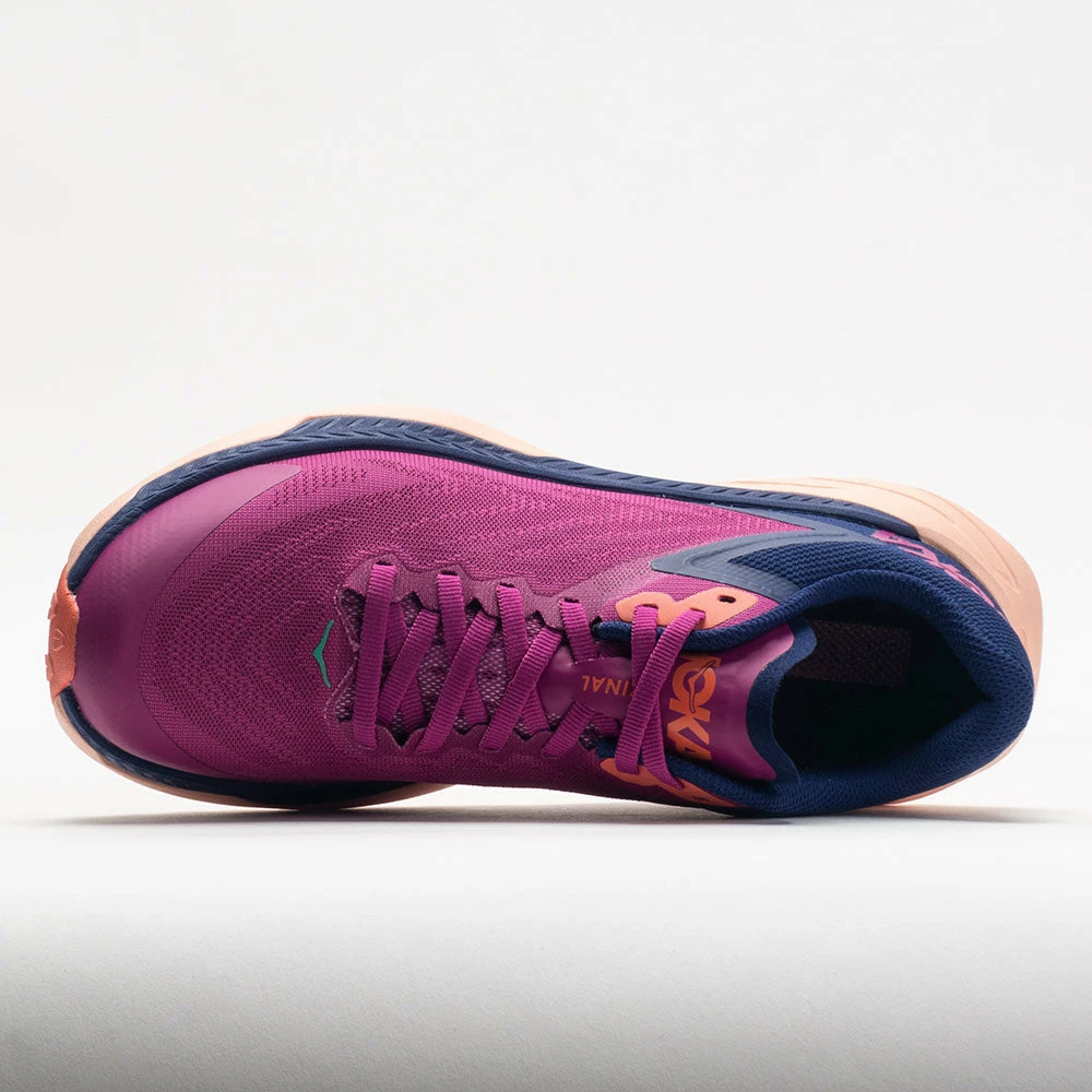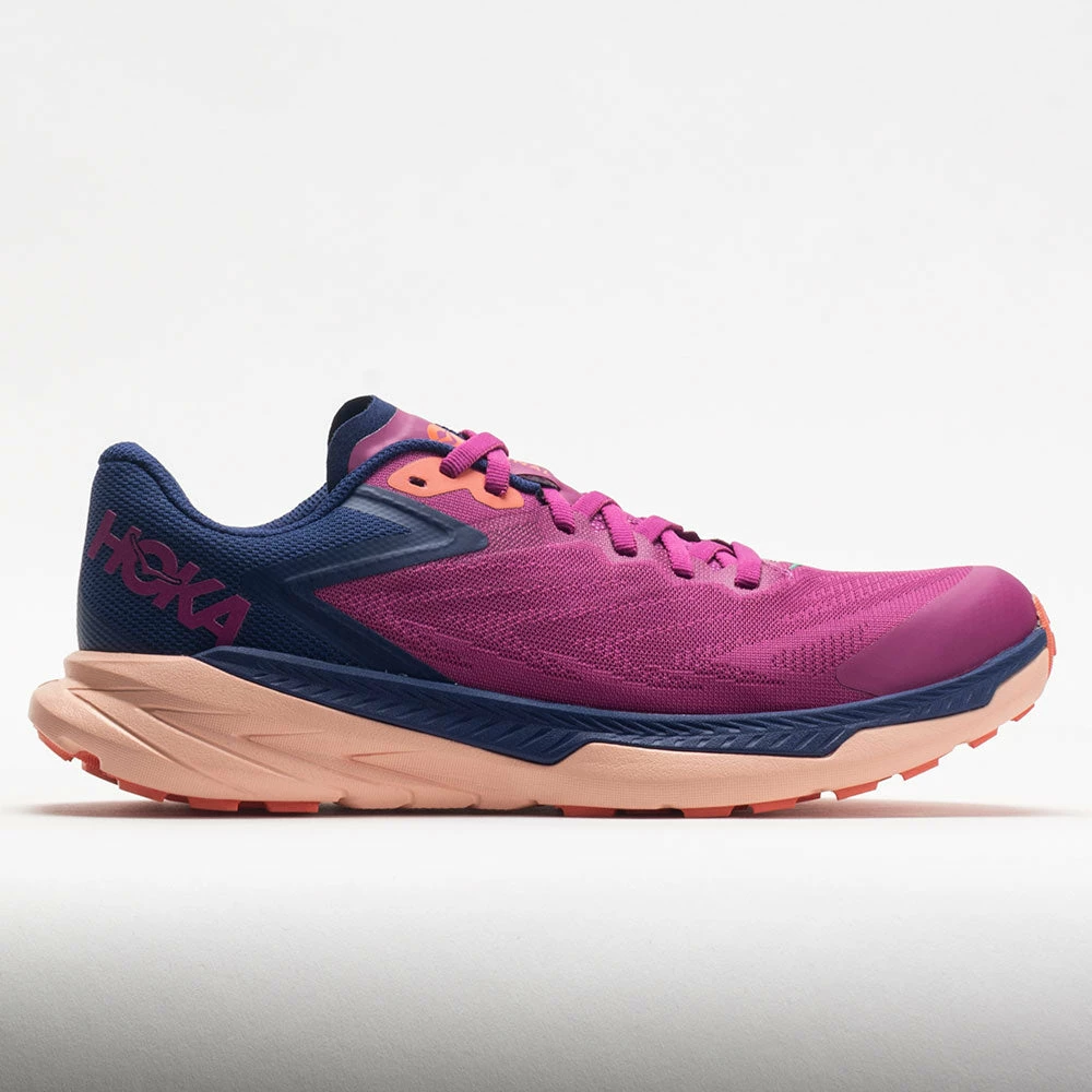 Zoom through short distances in the Hoka Zinal! This responsive trail runner blends speed and agility to blaze off-road courses. Step into a stripped-back upper with a gusseted tongue to stop debris from entering. Feel fast and energetic strides under the PROFLYโข midsole. Lightweight, grippy and durable, the Hoka Zinal is one speedy trail shoe!