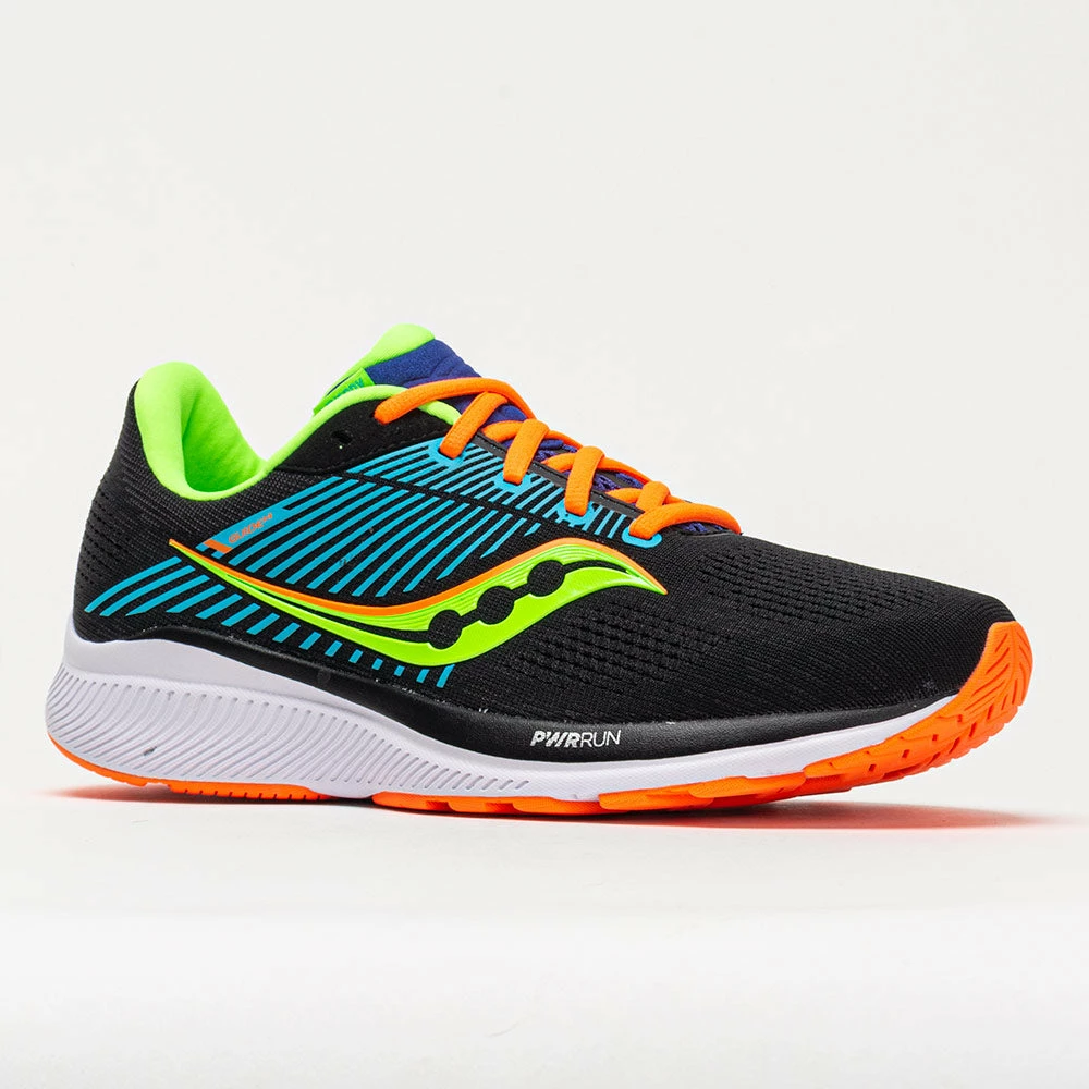 Leading you confidently through each mile, the Saucony Guide 14 breaks the mold of regular support shoes. The unique PWRRUN foam midsole puts more responsiveness into a soft bed of cushion, providing a lively ride for a stability shoe. Feel the support from all angles with the TPU guidance frame and 3D-engineered fascia in the upper. Slip into the FORMFIT upper that wraps your foot comfortably, creating a clean look with less bulk. Whether you prefer short or long runs, fast or slow tempos, the Saucony Guide 14 will support every step of the way!