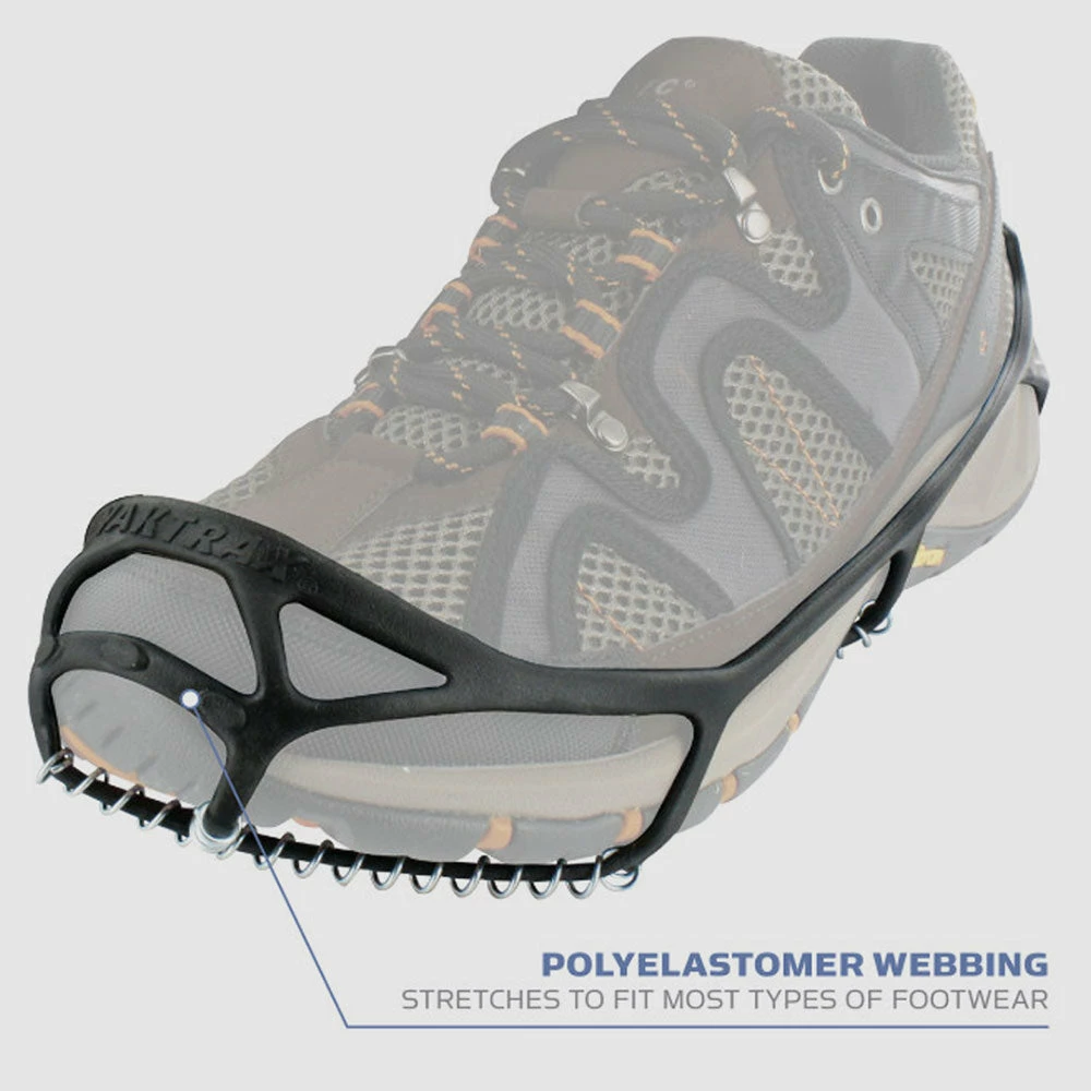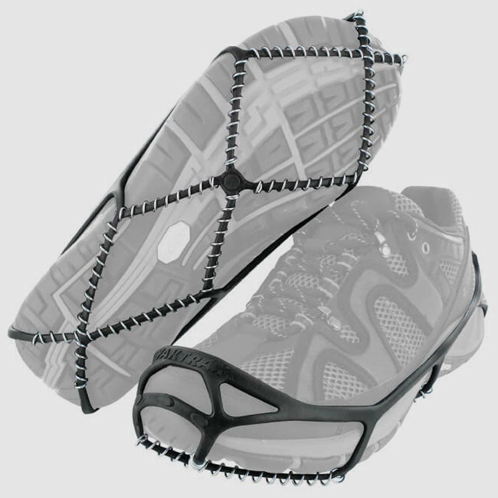 The Yaktraxยฎ Walk shoe system is an ultra-lightweight and easy to use traction device for walking on snow and ice. This spikeless version offers 360ยฐ of traction with a patented skid lock coil system and Abrasion resistant 1.2 mm steel coils to help prevent falls and injuries due to slips on slick ice and snow.