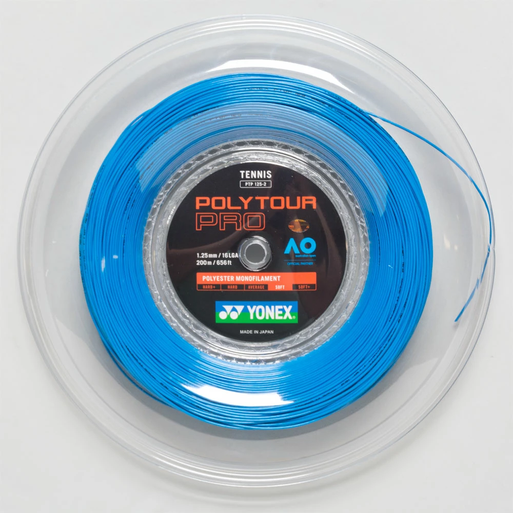 The Yonex Poly Tour Pro 1.25 16L Reel is a polyester monofilament that provides excellent durability while reducing arm fatigue. This string also features a high repulsion power to help you hit winners. For players of all swing speeds looking for a soft, all-around string, try the Yonex Poly Tour Pro!