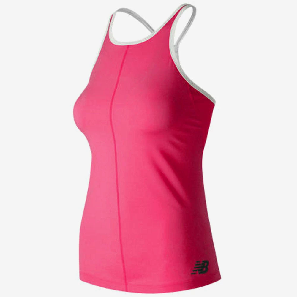 With the New Balance Centre Court Tank, ladies will feel the freedom of movement necessary to dominate the court. Soft, flexible materials with mesh inserts provide a comfortable, moisture-controlled environment. Skinny racerback straps and a slightly higher neck give a sophisticated look and some extra coverage. Pair this stylish tank with your favorite tennis skirt or skort for a completed ensemble.